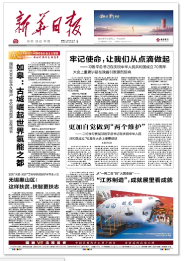 第四屆國際氫能與燃料電池汽車大會于2019年9月28日在江蘇如皋圓滿結(jié)束,新華日報對大會進行了全程跟蹤采訪,并在2019年10月4日的第一版重要新聞中對本次氫能大會做了重點報道。